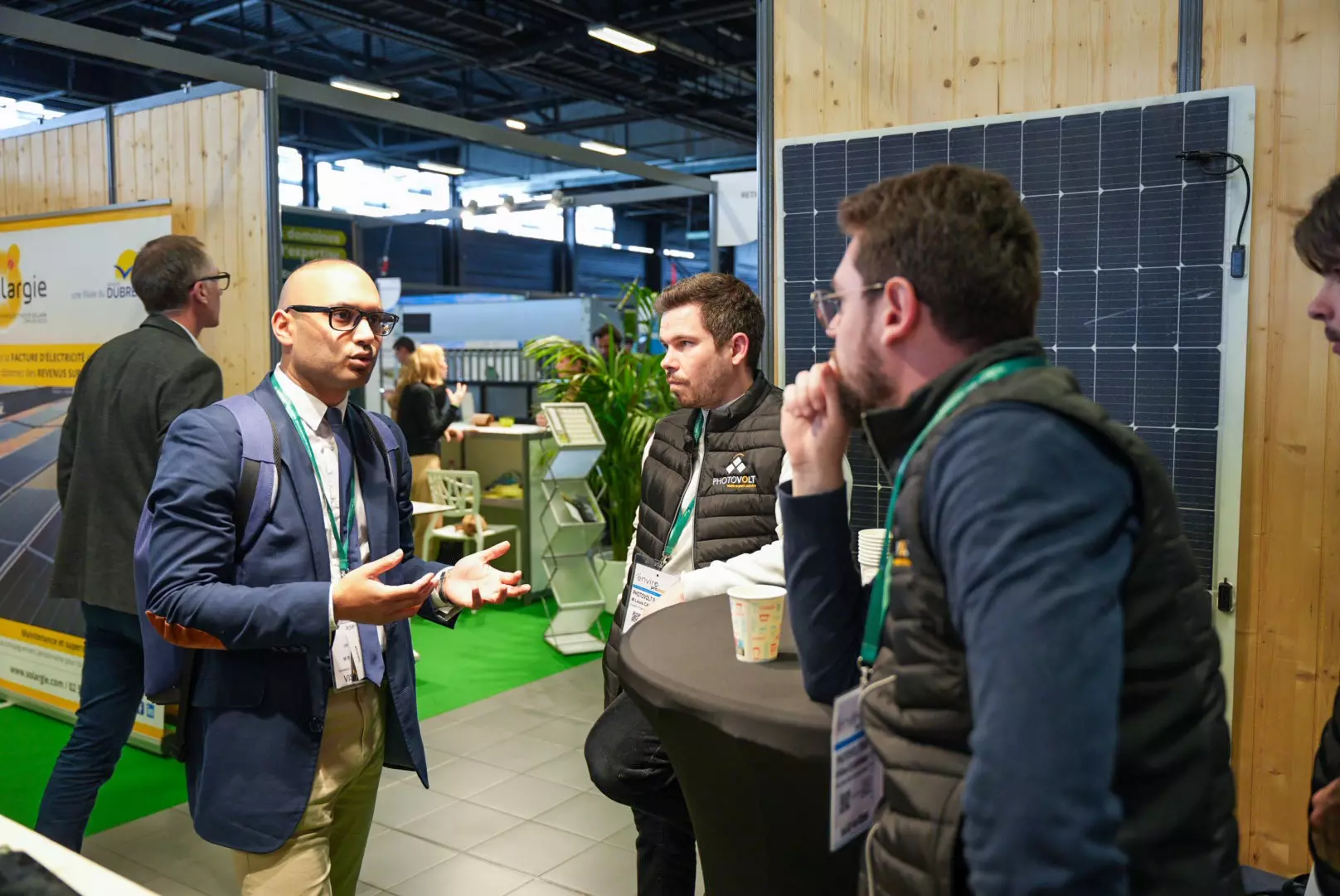 Depuis le début du salon, de nombreux visiteurs sont venus à notre rencontre pour en savoir plus sur l’installation de panneaux solaires et les bénéfices d’une production d’énergie verte. Notre équipe, composée de Maxime Normand, Adrien Héline et Claude Nzaou, est à votre disposition pour vous guider et répondre à toutes vos questions.